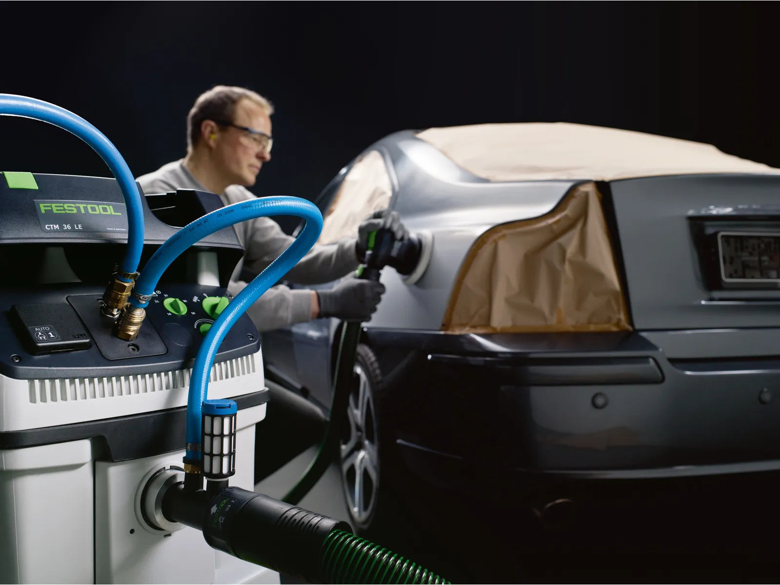 Das Druckluftmodul Festool DL CT 26/36/48 erweitert kompatible CT-Absauggeräte um eine Gebläsefunktion. Mit diesem Zubehör wird Ihr Staubabsauger zu einem vielseitigen Reinigungsgerät für Werkstattanwendungen.