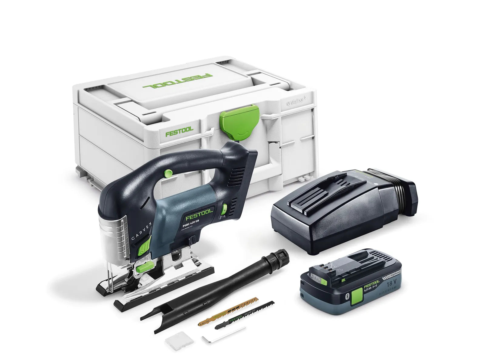 Während die CARVEX bereits hervorragende Ergebnisse liefert, verkörpert die PSBC 420 EBI-Plus die ultimative Weiterentwicklung der Festool-Stichsägentechnologie. Dieses Komplettsystem umfasst zwei leistungsstarke 4,0-Ah-Akkus, mit denen Sie selbst anspruchsvollste Projekte unterbrechungsfrei bewältigen können. Dank integrierter Bluetooth-Technologie ist eine nahtlose Verbindung mit der Festool-App möglich, um Leistung zu überwachen und individuelle Einstellungen vorzunehmen – eine Funktion, auf die Profis bei komplexen Aufgaben immer häufiger vertrauen.