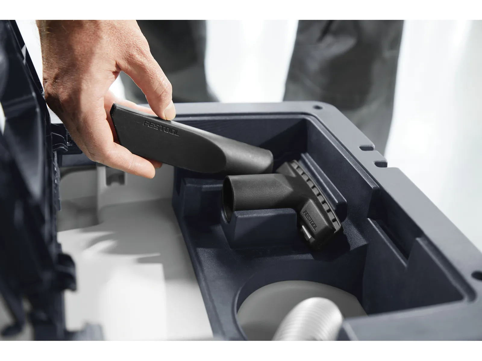 Die Festool Fugendüse D 36 FD-150 ermöglicht in Verbindung mit Schläuchen mit D 27 oder D 36 den Zugang zu engen Zwischenräumen. Dank ihrer Länge von 150 mm und des schlanken Profils lassen sich auch schwer zugängliche Stellen gründlich reinigen.