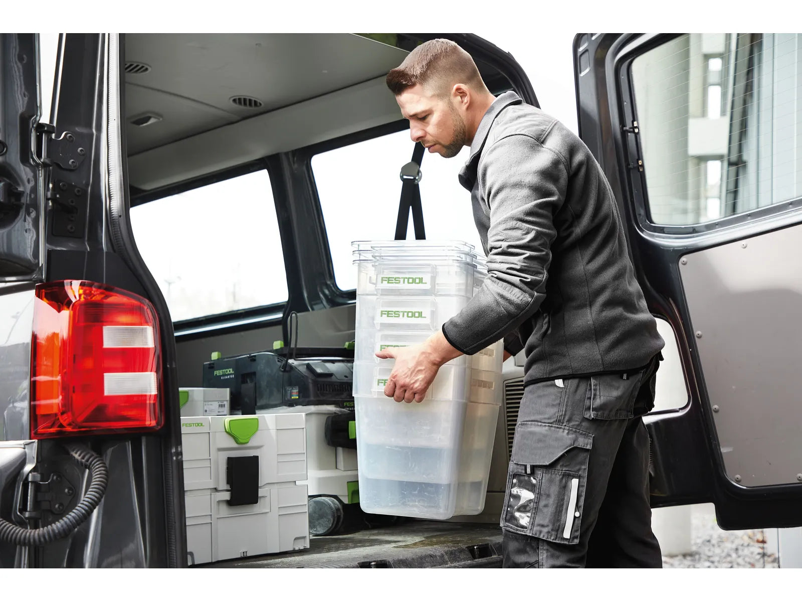 Der Festool VAB-20/1 Auffangbehälter ist für die Verwendung mit dem Vorabscheider CT-VA 20 konzipiert. Dieser 20-Liter-Behälter fängt grobe Partikel auf, bevor diese in den Hauptstaubabsauger gelangen.