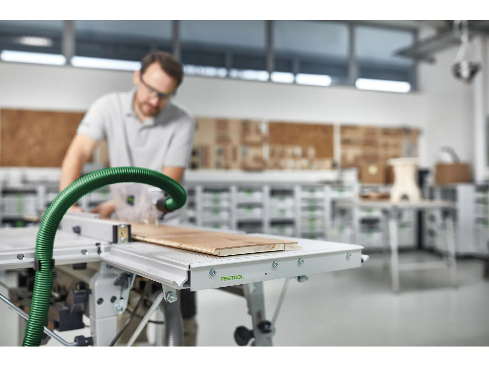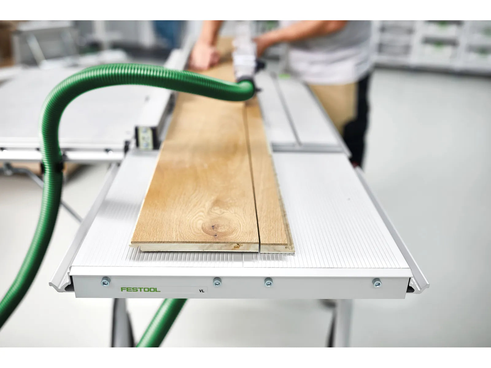 Der Festool VL Verlängerungstisch bietet zusätzliche Arbeitsfläche für CS 50 Sägen und CMS-GE Module. Dieses Zubehör erweitert den Arbeitsbereich und verbessert so die Materialabstützung während der Bearbeitung.