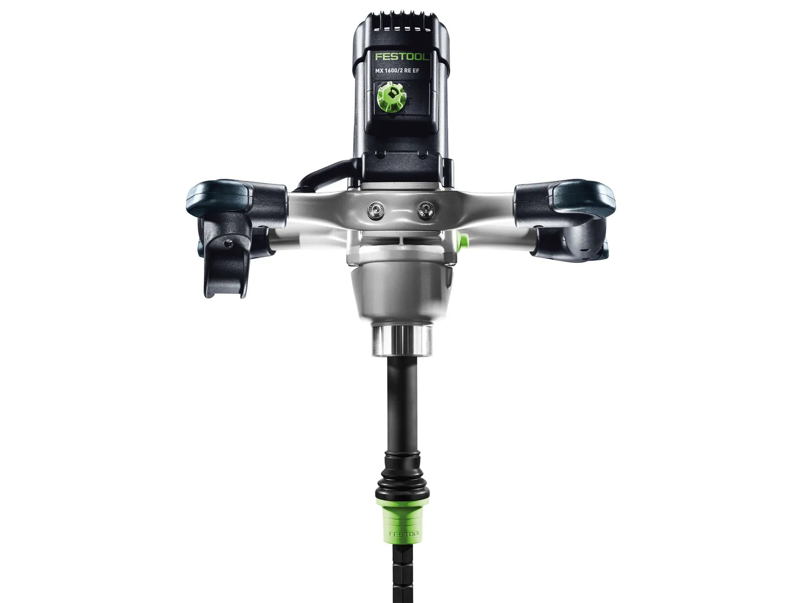 Die MX 1600/2 RE EF HS3R verfügt über ein Zweiganggetriebe für individuell einstellbare Mischgeschwindigkeiten und erzielt so optimale Ergebnisse bei dickflüssigen und flüssigen Materialien. Der ErgoFix-Werkzeughalter ermöglicht einen schnellen Paddelwechsel und steigert damit die Effizienz auf stark frequentierten Baustellen. Der 6,9 kg leichte Rahmen mit ergonomischen Griffen sorgt für einen sicheren Stand, während das 4 m lange Kabel Flexibilität auf großen Arbeitsbereichen gewährleistet.