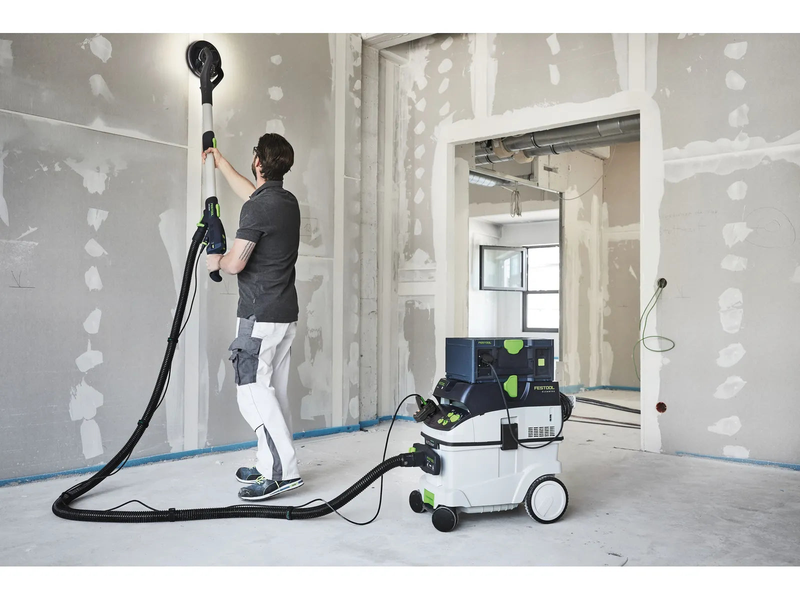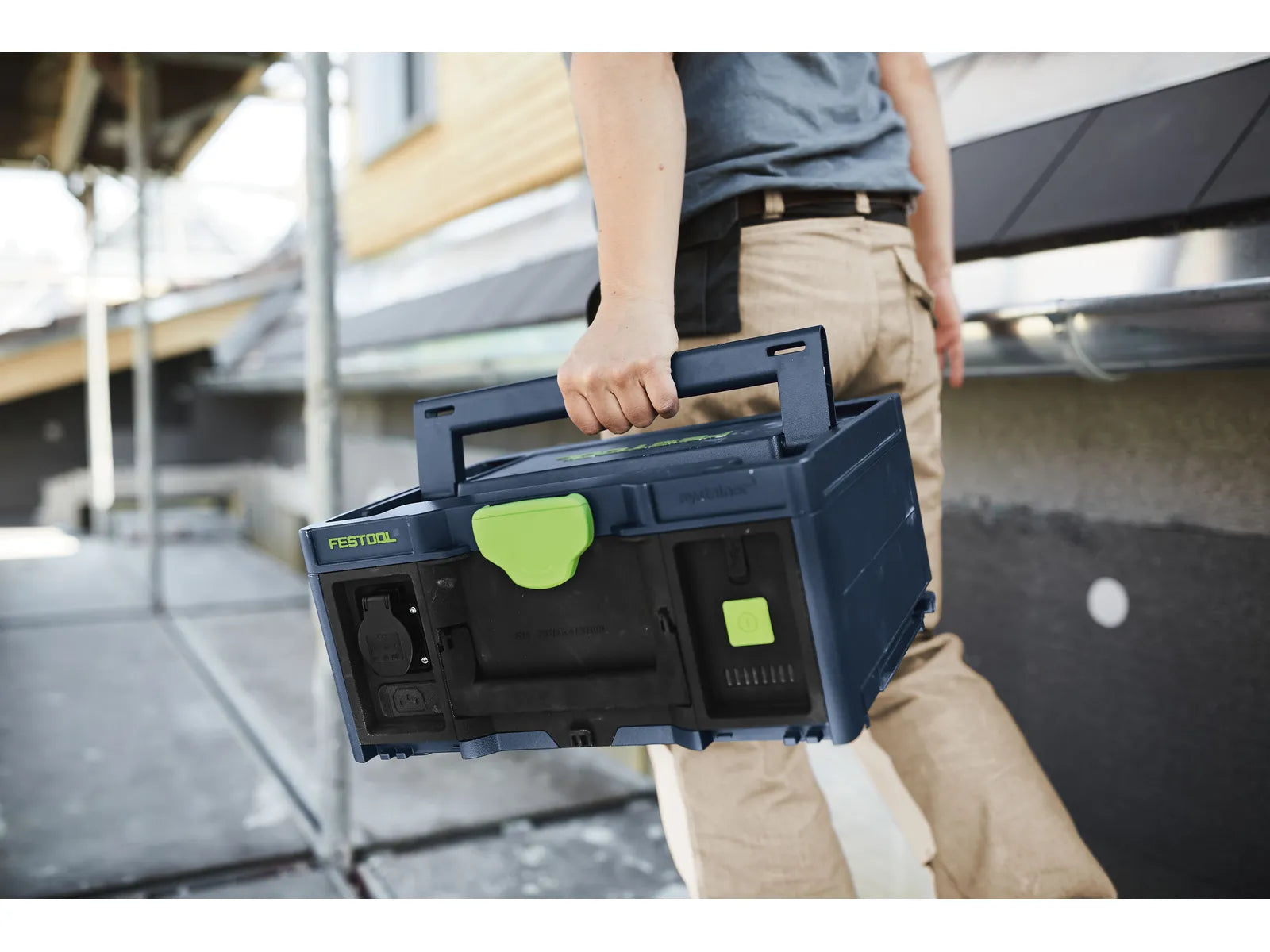 Der USB-C-Ausgang (5–20 V/3 A/15–60 W) ermöglicht das gleichzeitige Laden von Mobilgeräten und Zubehör, während das 2 m lange Netzkabel für die meisten Anwendungen ausreichend Reichweite bietet. Das System ist mit dem Festool SYS- Aufbewahrungssystem für übersichtlichen Transport und platzsparende Lagerung kompatibel.