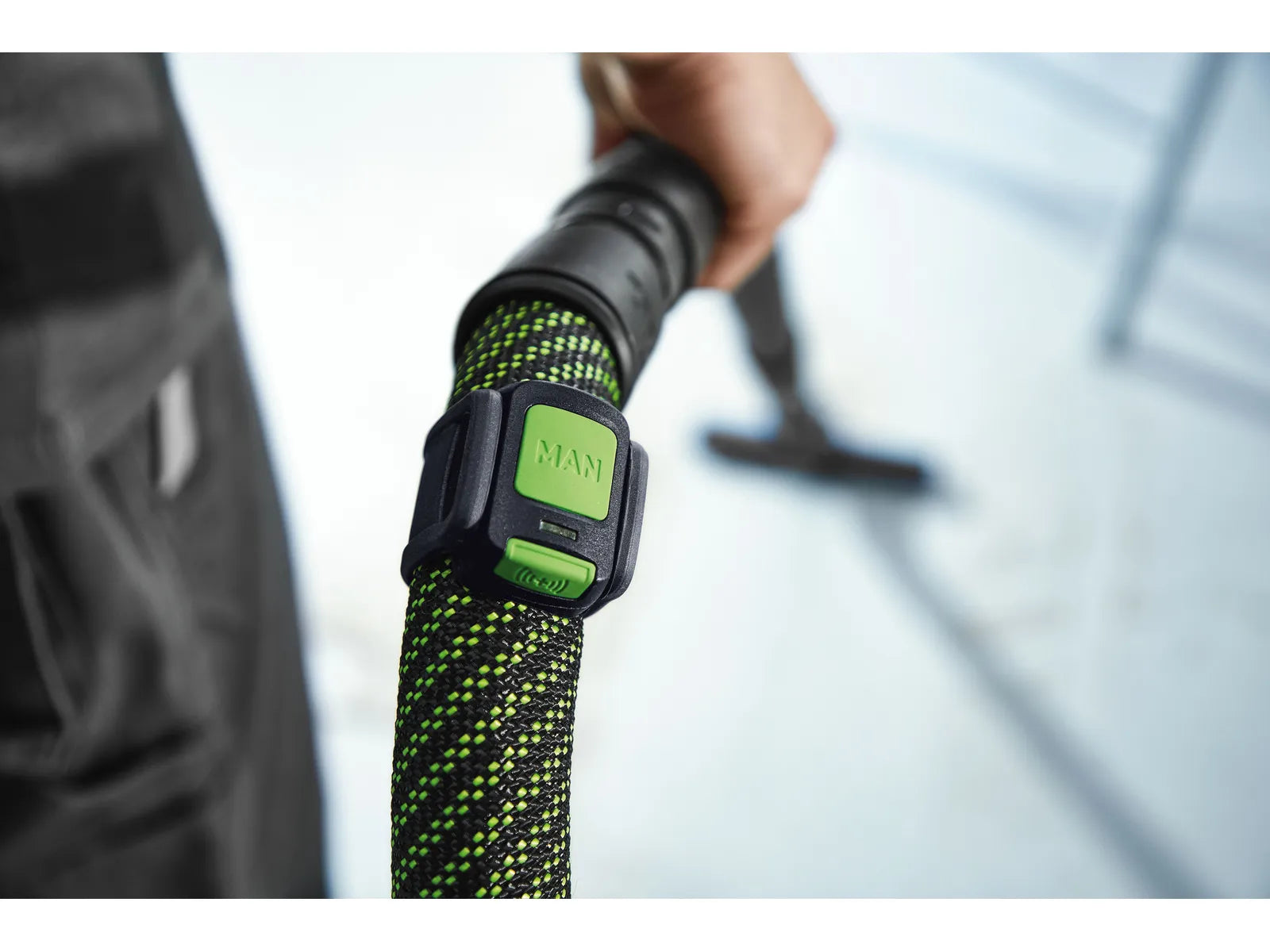 Diese Fernbedienung ermöglicht die kabellose Bedienung aller Festool-Staubsauger mit Bluetooth®-Technologie. Die Reichweite von 10 Metern bietet Flexibilität bei der Fernsteuerung des Absaugers und optimiert so die Arbeitsabläufe in großen Räumen oder an schwer zugänglichen Stellen. Dank der kabellosen Steuerung entfällt das ständige Zurückkehren zum Absauger, um Einstellungen oder die Leistung anzupassen.