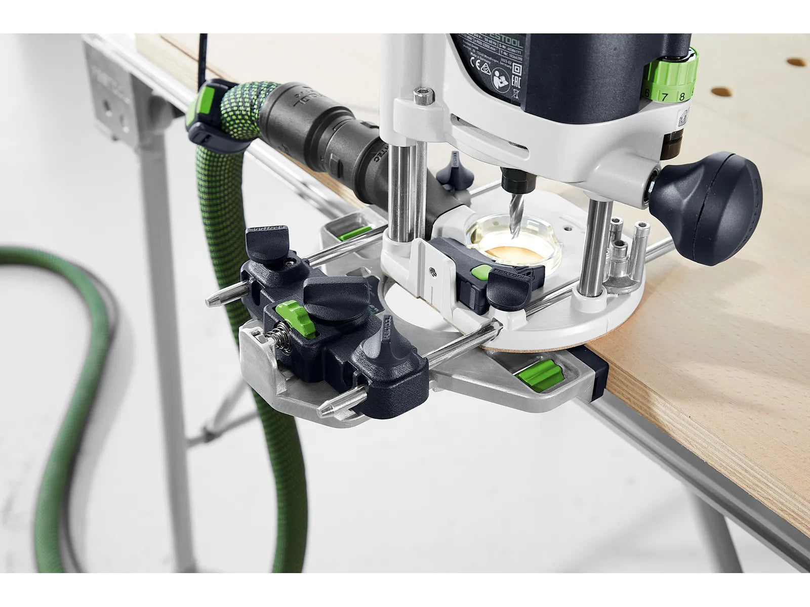 Die Festool OF 1010 REBQ setzt mit ihrem 1010-W-Motor und dem variablen Drehzahlbereich von 9.500 bis 23.000 U/min Maßstäbe für präzises Fräsen. Diese Oberfräse wurde für anspruchsvolle Holzbearbeitungsanwendungen entwickelt und verarbeitet Spannzangen von 6 bis 8 mm Durchmesser. Sie bietet einen Fräshub von 55 mm und eine Feineinstellung von 8 mm. Die 50 mm große Werkbanköffnung ermöglicht vielfältige Fräsarbeiten bei gleichzeitig hoher Stabilität und Kontrolle.