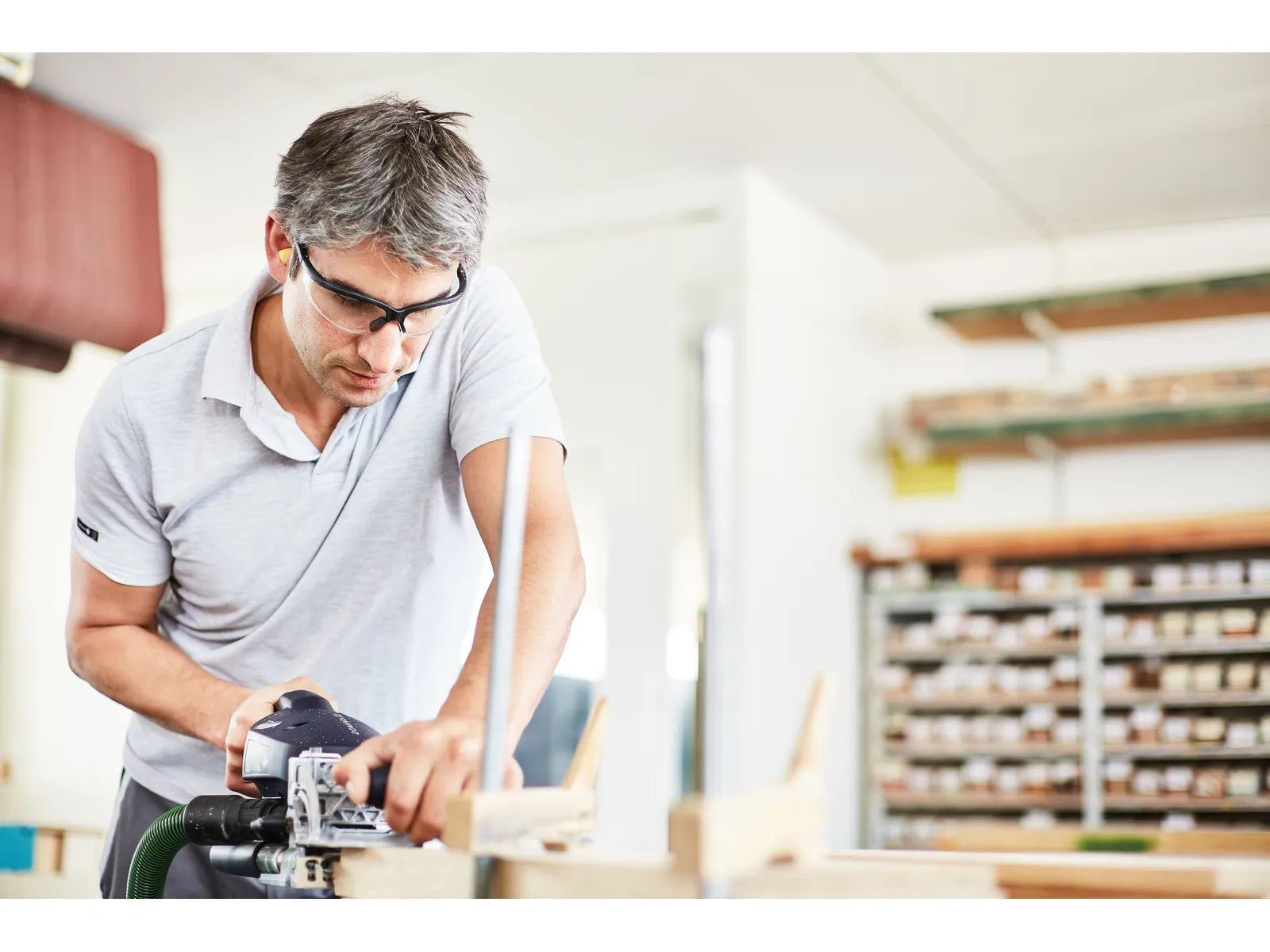 Mit einer Drehzahl von 21.000 U/min fertigt die DF 700 EQ-Plus makellose Zapfenverbindungen für Möbelbau, Schrankbau und Konstruktionsverbindungen. Der Tiefenanschlag ermöglicht eine präzise Einstellung von 15 mm bis 70 mm und eignet sich somit für verschiedene Materialstärken und Verbindungsanforderungen. Die Fräshöhenverstellung von 10 mm bis 50 mm bietet Flexibilität für unterschiedliche Werkstückkonfigurationen, während die Gehrungsfunktion von 0–90° Winkelverbindungen für komplexe Konstruktionen ermöglicht.