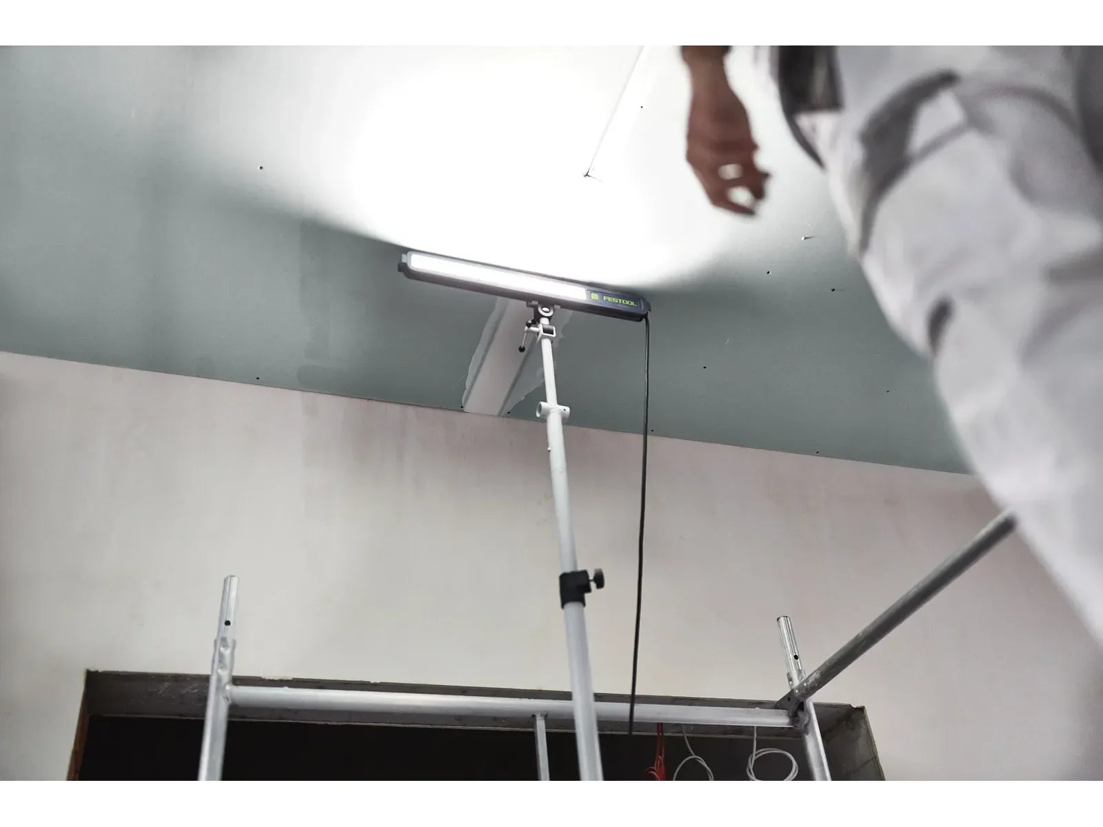Die Oberflächenprüfleuchte Festool SYSLITE STL 450 bietet fokussierte Ausleuchtung für detaillierte Prüfungen. Sie wird von einer 18-W-LED mit 1.200 Lumen angetrieben . Ihre tageslichtähnliche Farbtemperatur von 5.000 K und die Farbwiedergabe von >80 Ra machen Oberflächenfehler deutlich sichtbar. Mit ihrem IP55-zertifizierten Gehäuse und dem geringen Gewicht von nur 1,5 kg ist diese Leuchte ideal für Fachleute, die in Deutschland eine Festool-Prüfleuchte für einwandfreie Qualitätskontrollen suchen.